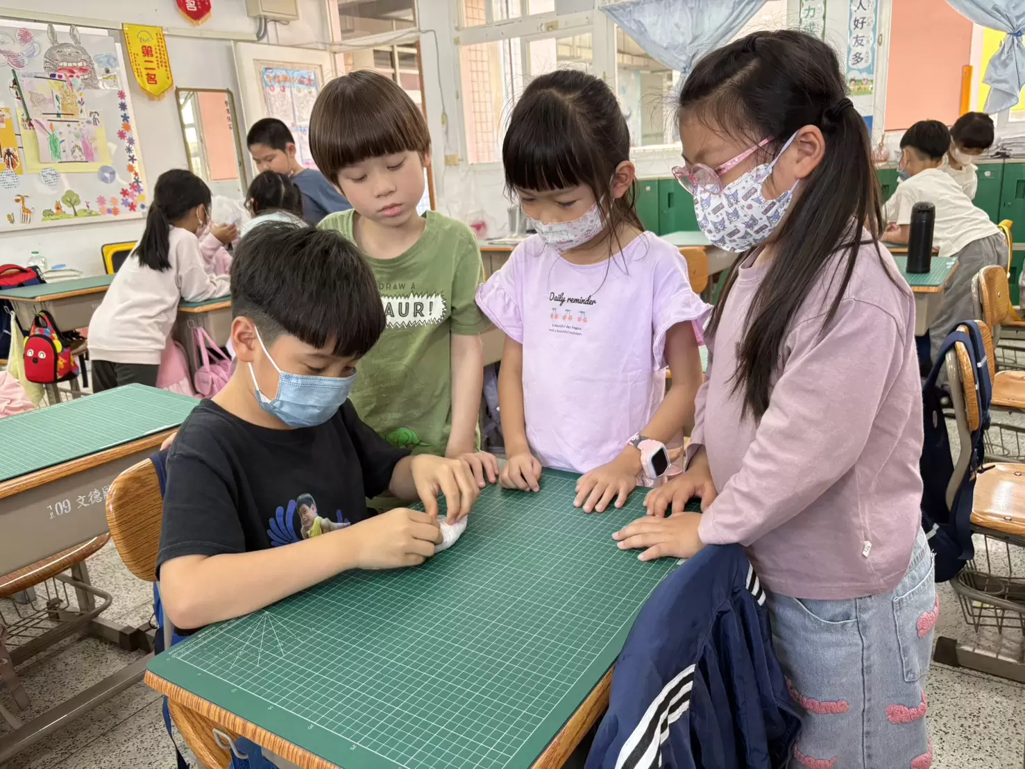 透由平時的影片宣導,孩子們都有減塑的概念,也會在校園裡撿拾垃圾做善行,進而學習摺塑膠袋,有不少孩子都分享在家會幫爸媽摺塑膠袋,提醒父母要重複使用塑膠袋喔~老師聽了真是欣慰啊!