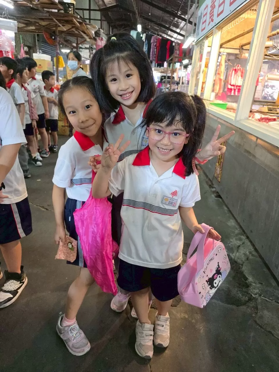 逛逛菜市場~台語課上到許多水果、蔬菜和肉類的用語,利用上課時間帶學生去學校隔壁菜的市場逛逛,認識水果舖、魚販和肉攤上所販賣的蔬果和肉類。學生自備購物袋裝著自己所買的蔬果,或是購物不拿塑膠袋,直接用手拿。我們全班一邊學台語,一邊減塑環保愛地球。