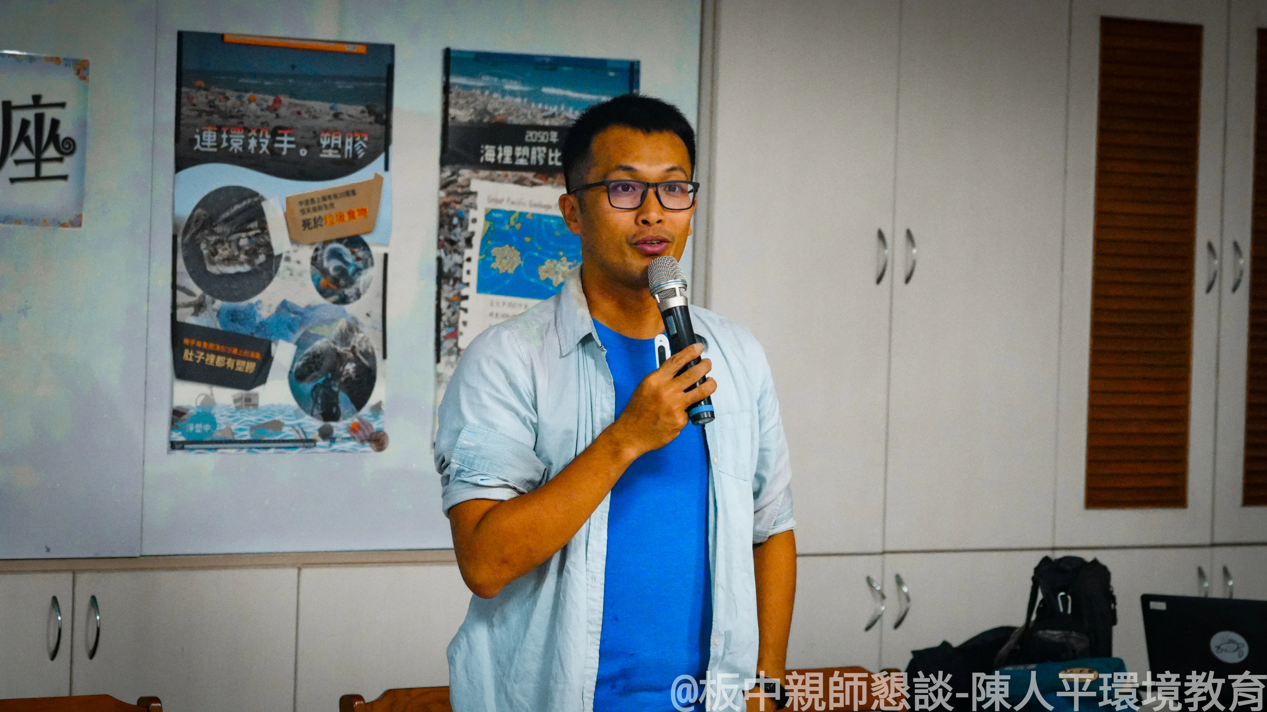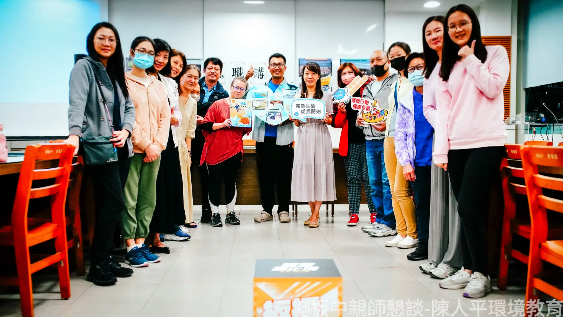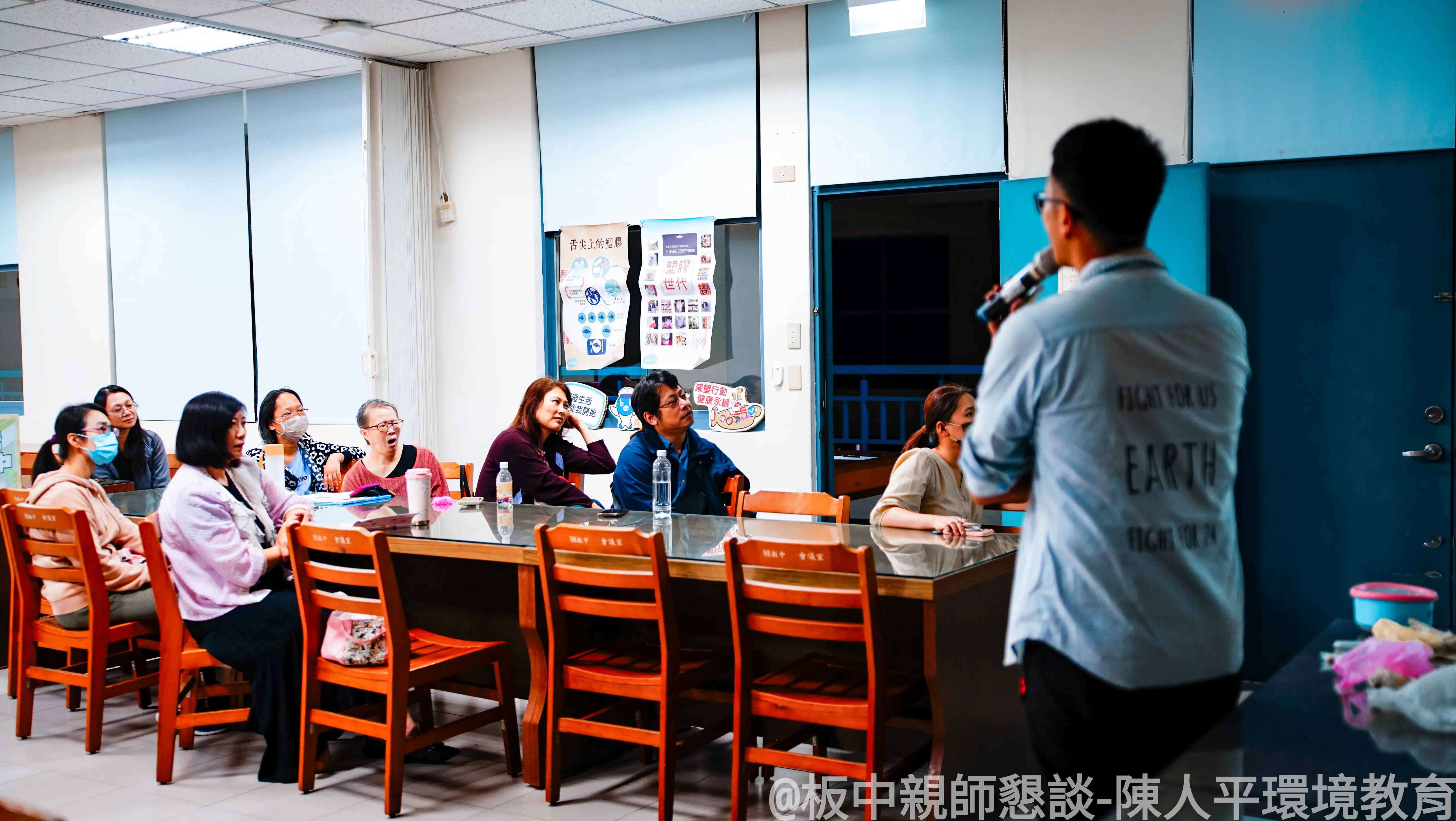 在板中輔導主任李昭紋帶領團隊辦理親師懇談會,特別邀請海湧工作室執行長陳人平老師,以簡報分享日常塑膠使用對人體健康與海洋生態的直接傷害,並說明如何透過改變生活習慣,實際守護海洋生物。透過簡報及真實影像,讓家長看見塑膠對海龜等生命的衝擊,促進家長與師長共同學習,攜手從校園出發,為孩子打造更友善的環境。