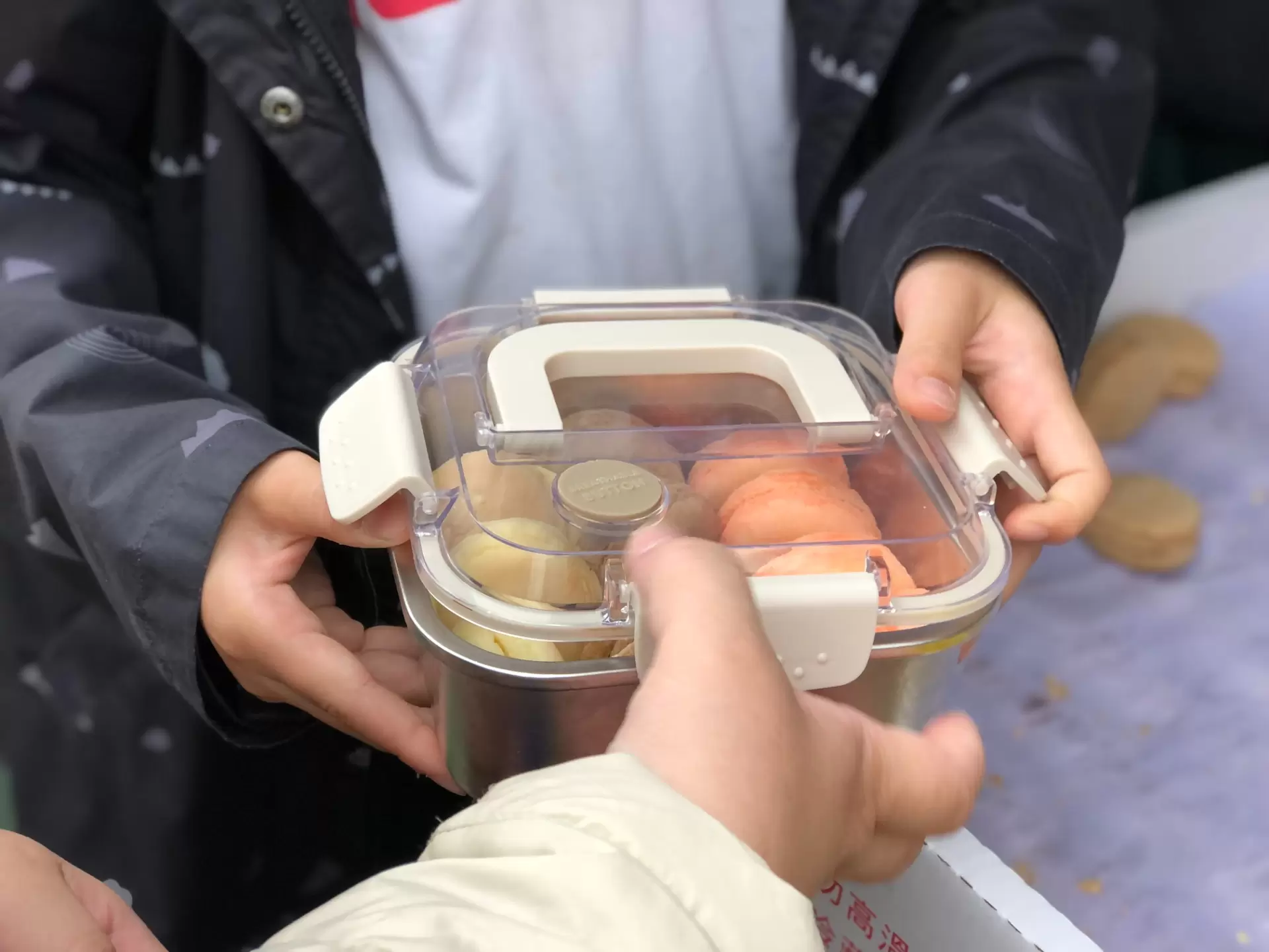 全校教師研習,點心、飲料用籃子跟保麗龍箱子裝